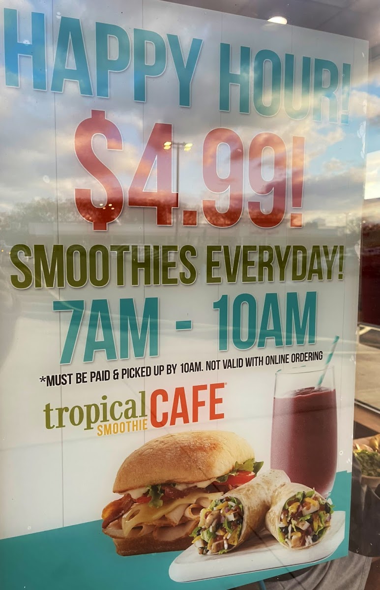 The café shines with its smoothies—rich, filling, and customizable—making it a favorite post-workout stop. Customer favorites like the Peanut Paradise smoothie and protein-packed wraps highlight the brand’s commitment to quality and taste. Complementing the menu are convenient bottled beverages, rounding out a satisfying, wholesome dining experience. Friendly staff and attentive service enhance every visit, creating a welcoming atmosphere alongside thoughtfully crafted dishes. Tropical Smoothie Cafe proves itself a versatile destination, perfect for anyone seeking quick, nutritious, and delicious meals in a casual setting.